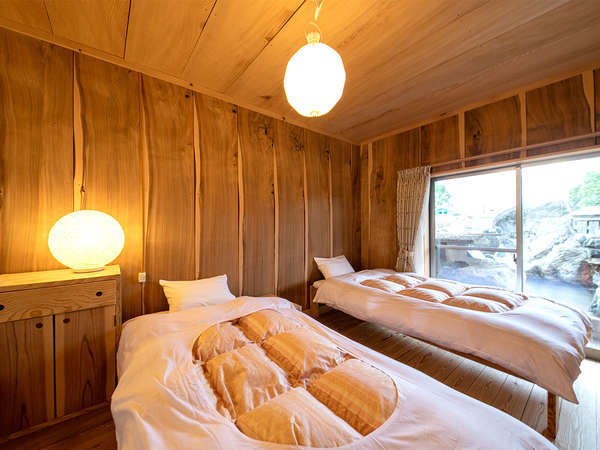 天然木にこだわった癒しの客室と源泉かけ流し100%の温泉が自慢の宿