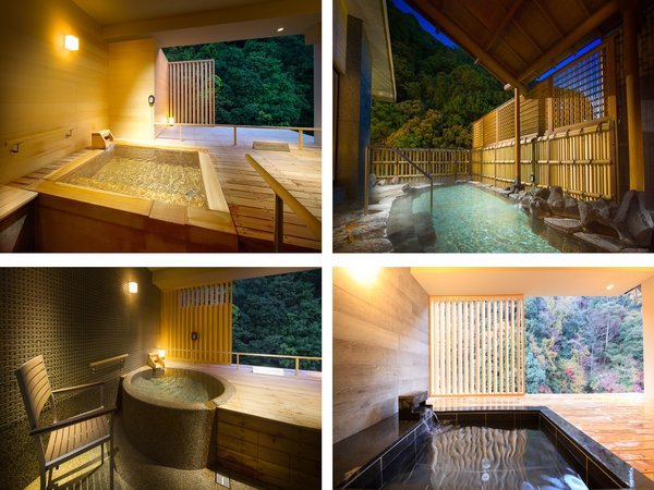 貸切風呂「雲」「星」「月」と大浴場「桂」露天風呂