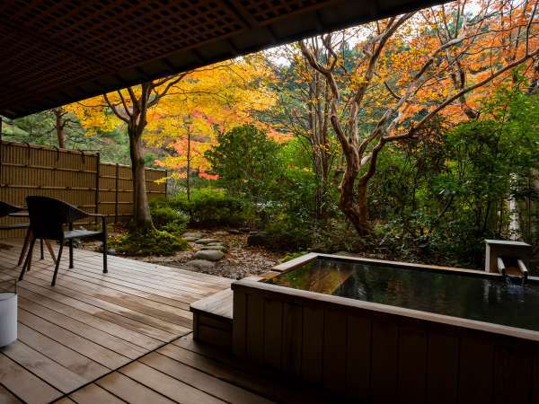 【ジャパニーズスイート】専用の半露天風呂で紅葉を眺めながらのんびりと。