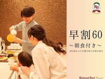 【早期割60】複数名でお得に予約したい方へ!宿泊者専用ラウンジ有♪ 国産牛・刺身の豪華朝食☆朝食付