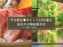 【ポイント10%還元◆平日限定】仙台牛の陶板焼き付『一汁八菜膳』と8つの湯で整う湯めぐり(1泊2食)