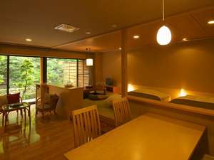「別邸六花 1階もくれん」は露天風呂付き和洋室、ローベッドタイプのお部屋です。 |