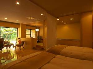 「別邸六花 1階れんぎょう」は露天風呂付き和洋室、通常のツインベッドタイプのお部屋です。 |