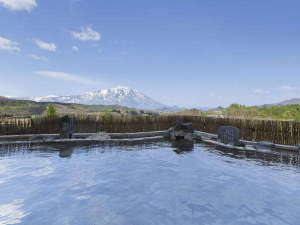 秀峰岩手山を望む絶景【空中露天風呂】は和風・洋風の2種がございます。(和風露天風呂) |