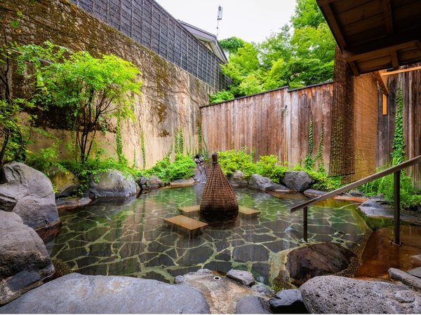 大浴場の露天風呂。越後湯沢温泉は、赤ちゃんもご一緒に入浴できる優しい温泉です。