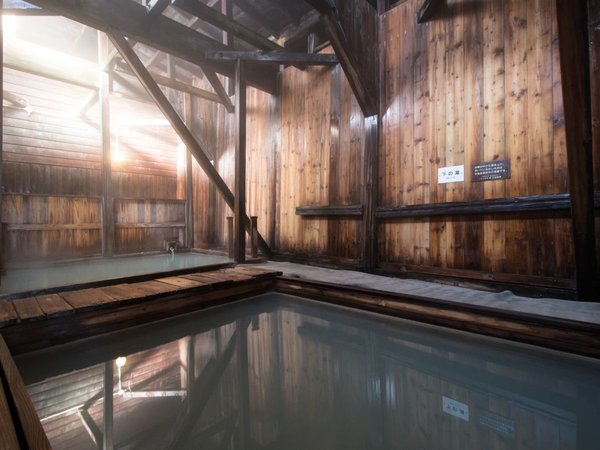 日本三秘湯として知られ、ぽこぽこと湧き出る柔らかな足元自噴の湯に浸かれば、日頃の疲れも取れます。38度の霊泉と言われる「下の湯」と42度の白濁した「上の湯」の二つの泉質の異なる湯をお楽しみ下さい。 |