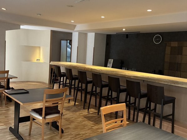 モダンに生まれ変わった静かな食事処。柔らかな光が灯るカウンターで、至福のお食事をゆったりと。