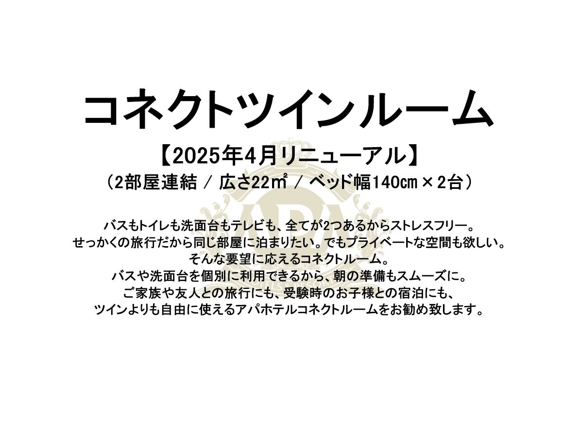 洋室 和室 和洋室 その他 総部屋数 152室 0室 0室 4室 156室 ▼洋室の内訳(部屋タイプと広さ) シングル ダブル ツイン スイート 118室 16室 22室 0室 12〜12m2 14〜14m2 16〜25m2 - 部屋補足 当館の空調(冷房・暖房の切替)は一括管理となっております。 標準的な部屋設備 全室バストイレ・全室シャワー・全室冷暖房・テレビ・衛星放送・空の冷蔵庫・ズボンプレッサー(貸出含む) インターネット関連 全室対応