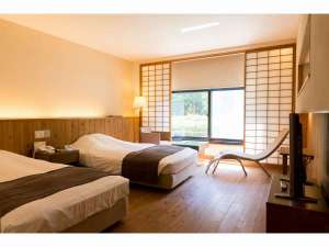 ■洋室ツインルーム34平米/ウッドデッキ調でとてもおしゃれなお部屋です。 |