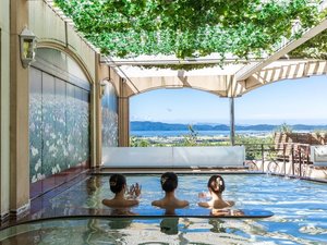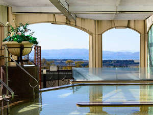 猪苗代湖が望める展望露天風呂。もちろん敷地内源泉の猪苗代温泉を使用。