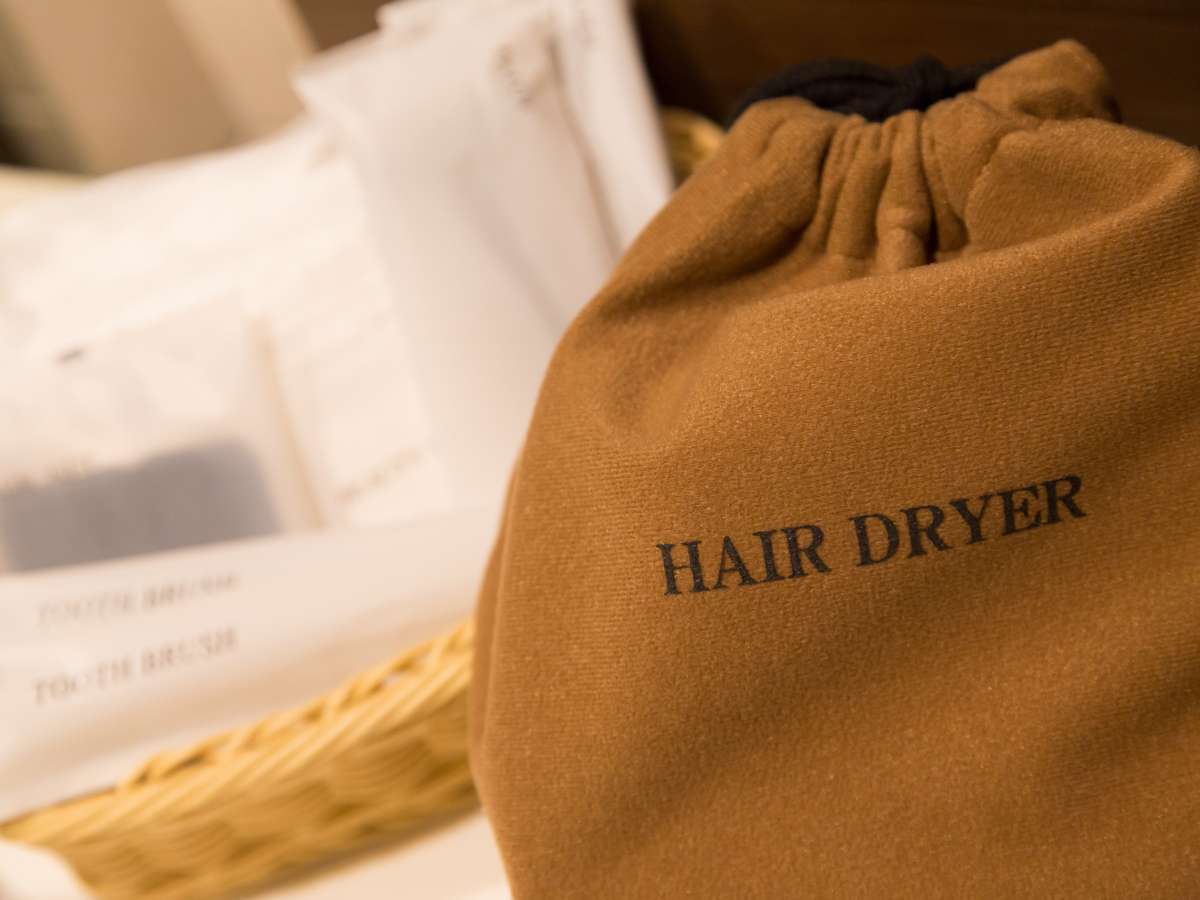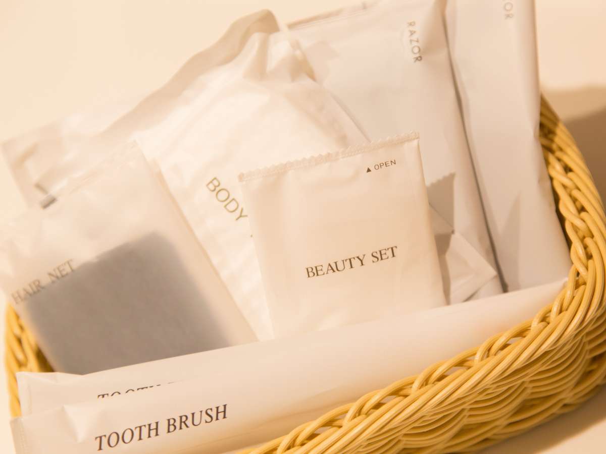 ○ ハンドタオル ○ ボディソープ ○ ドライヤー ○ 温水洗浄トイレ ○ 歯ブラシ・歯磨き粉 × 石けん ○ 羽毛布団 ○ くし・ブラシ ○ バスタオル × 浴衣 ○ 髭剃り ○ シャンプー