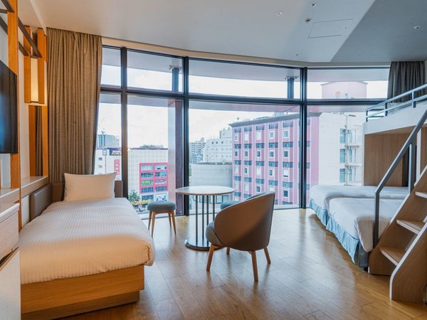 ファミリールーム|従来のベッド2台に加え、バンクベッド(2段ベッド)とソファベッドを新たに導入