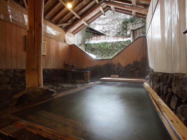 自然噴出でぬるめの湯温。じっくり温まり、ポカポカが持続する「自然風呂」