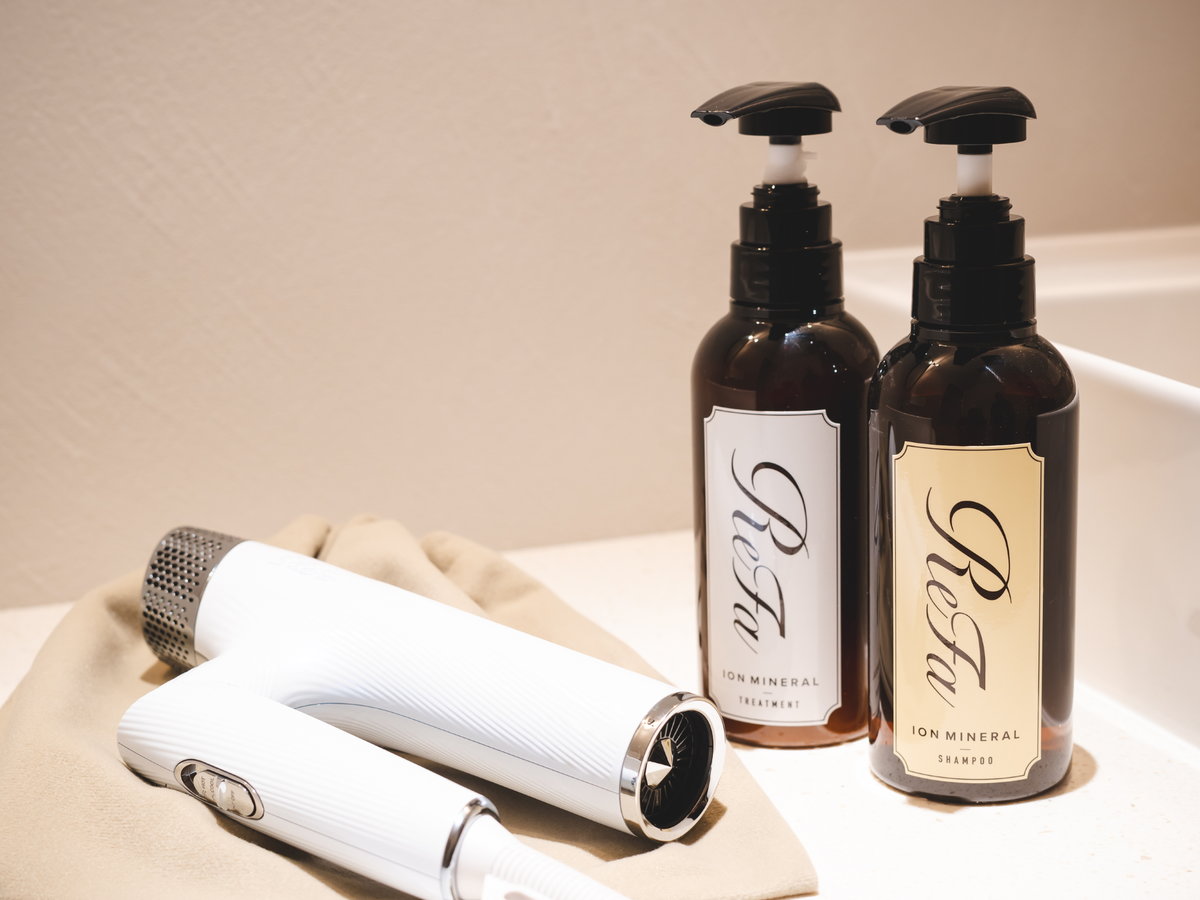 ○ ハンドタオル ○ ボディソープ ○ ドライヤー ○ 温水洗浄トイレ ○ 歯ブラシ・歯磨き粉 × 石けん ○ 羽毛布団 ○ くし・ブラシ ○ バスタオル ○ 浴衣 ○ 髭剃り ○ シャンプー