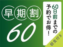 【早期割60/朝食付】60日以上前のご予約ならこのプラン!