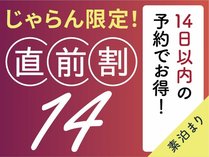 【じゃらん限定!直前割/素泊】14日以内のご予約ならこのプラン!