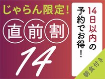 【じゃらん限定!直前割/朝食付】14日以内のご予約ならこのプラン!