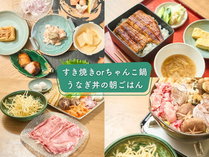 〔二食付/朝うなぎ〕すき焼きorちゃんこ鍋+一品料理5品/朝はうなぎ丼