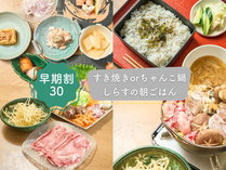 【早期割30】〔二食付/朝しらす〕すき焼きorちゃんこ鍋+一品料理5品/朝はしらす丼