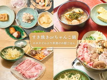 〔二食付/朝しらす〕すき焼きorちゃんこ鍋+一品料理5品/朝はしらす丼