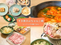 〔二食付/朝スンドゥブ〕すき焼きorちゃんこ鍋+一品料理5品/朝はスンドゥブ