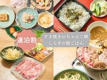 【連泊割】〔二食付/朝しらす〕すき焼きorちゃんこ鍋+一品料理5品/朝はしらす丼