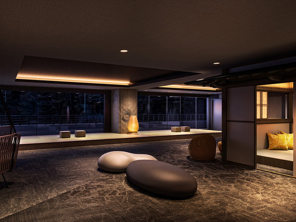 大聖寺川を見下ろせる湯上りラウンジでゆっくりおくつろぎください。※イメージ