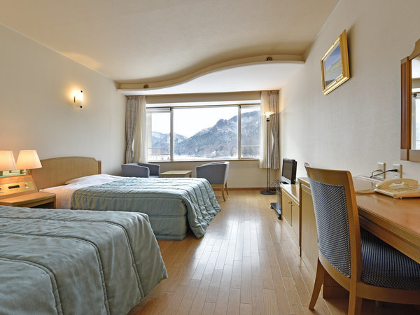 【本館・レイクビュー和室】窓いっぱいに広がる風景、豊かな旅情とくつろぎの時を演出してくれます。