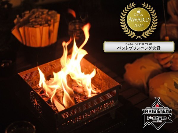 【テントで焚き火体験】焚き火の音と光で、心地よいリラックスタイムをお過ごしくださいませ
