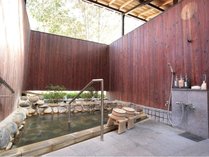 【源泉かけ流し大露天風呂】男女合わせて11の浴槽があり一度に500名が入浴可。利用時間6:00〜22:00