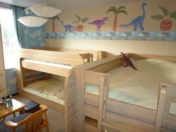 【2段ベッドで4人部屋の恐竜ルーム・301】2段ベッドを利用した、子供向けの可愛い恐竜のお部屋です。