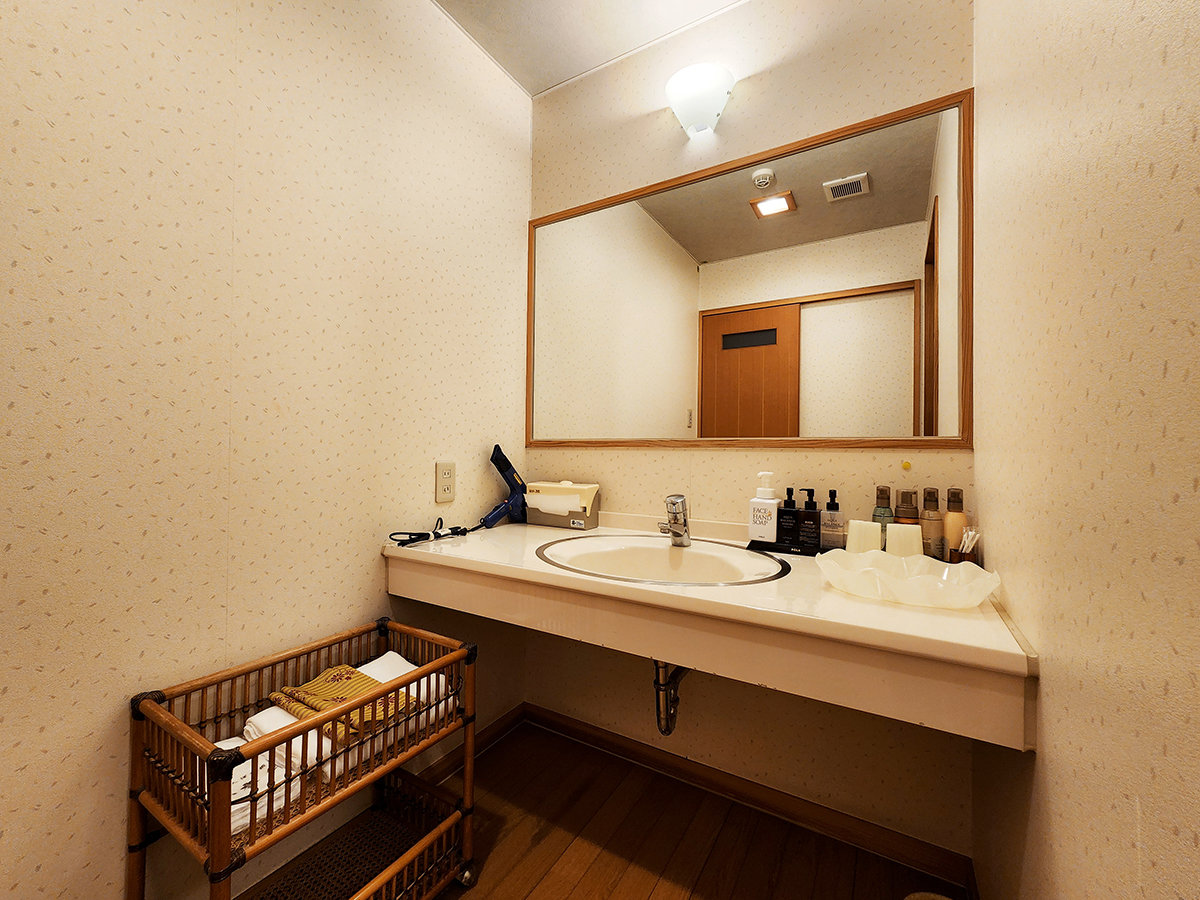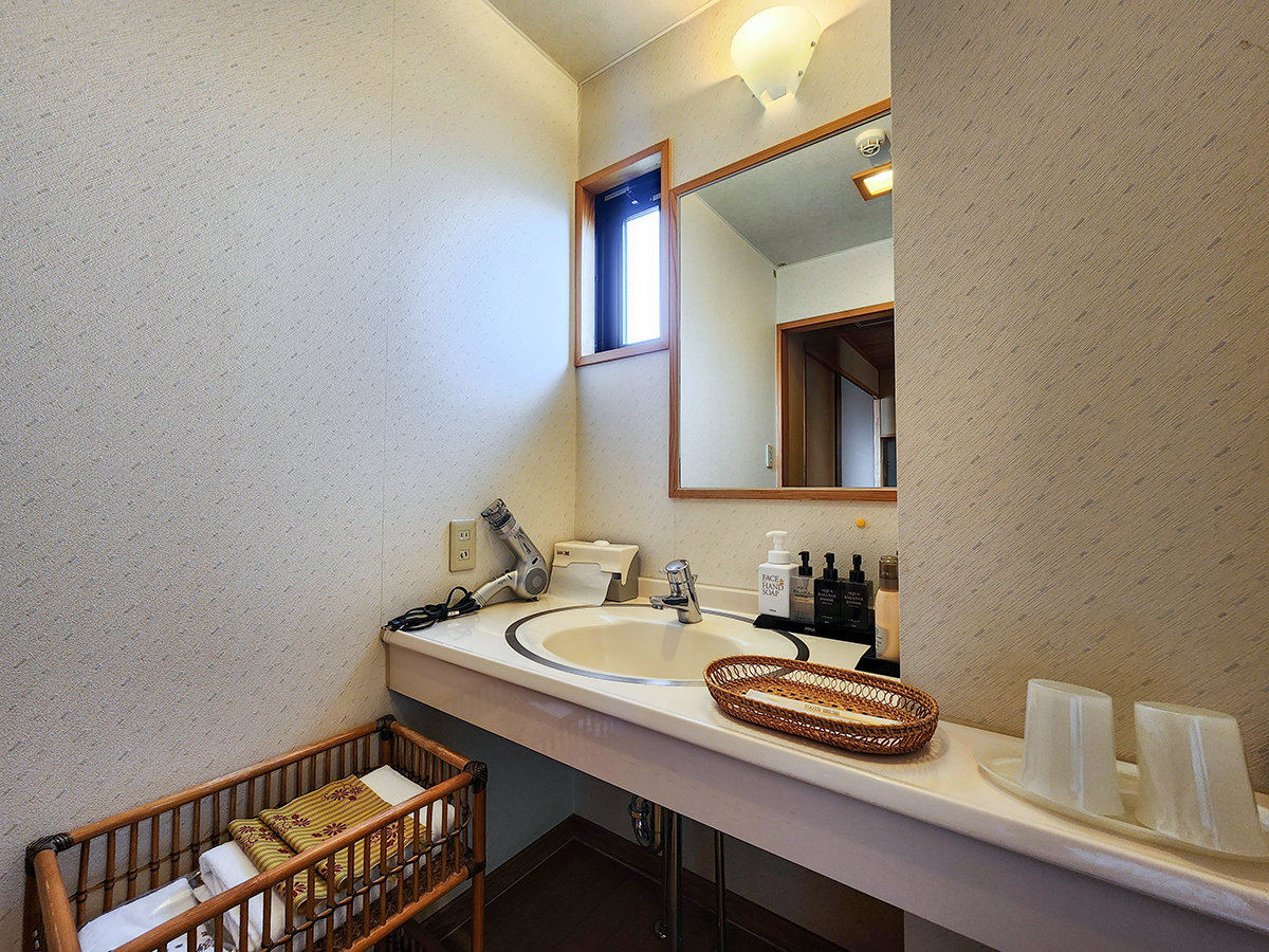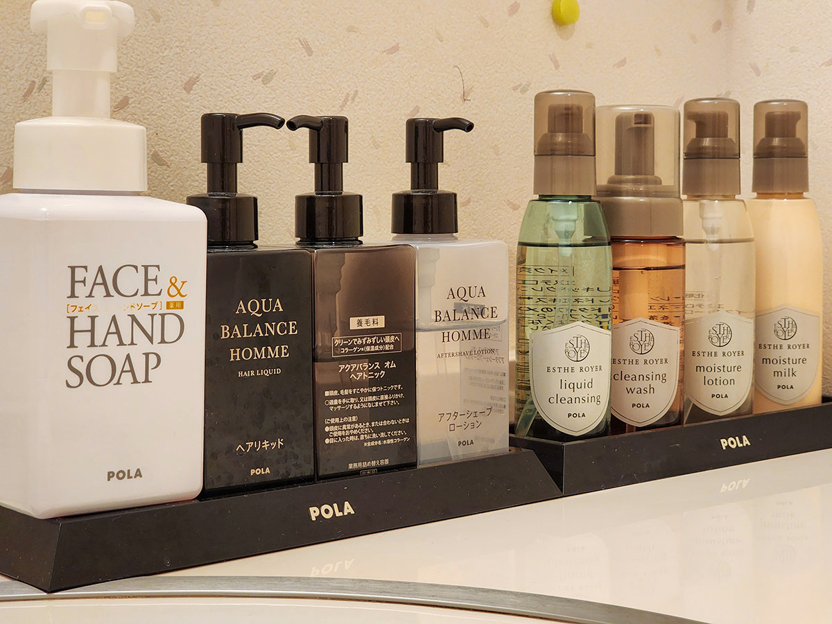 ○ ハンドタオル ○ ボディソープ ○ ドライヤー ○ 温水洗浄トイレ ○ 歯ブラシ・歯磨き粉 × 石けん ○ 羽毛布団 × くし・ブラシ ○ バスタオル ○ 浴衣 × 髭剃り ○ シャンプー