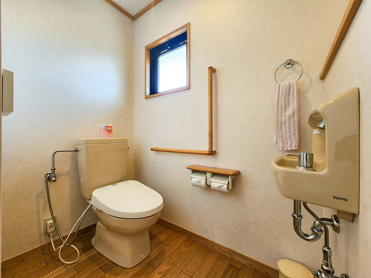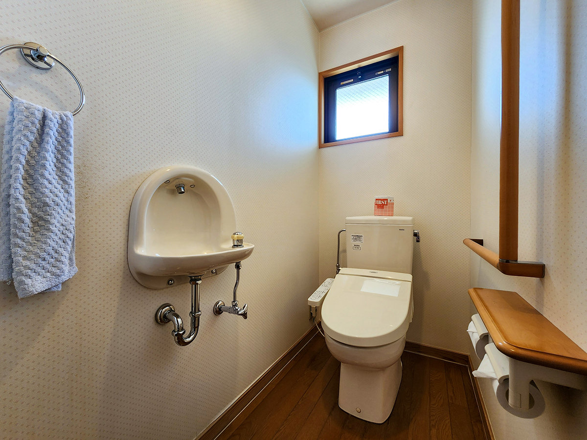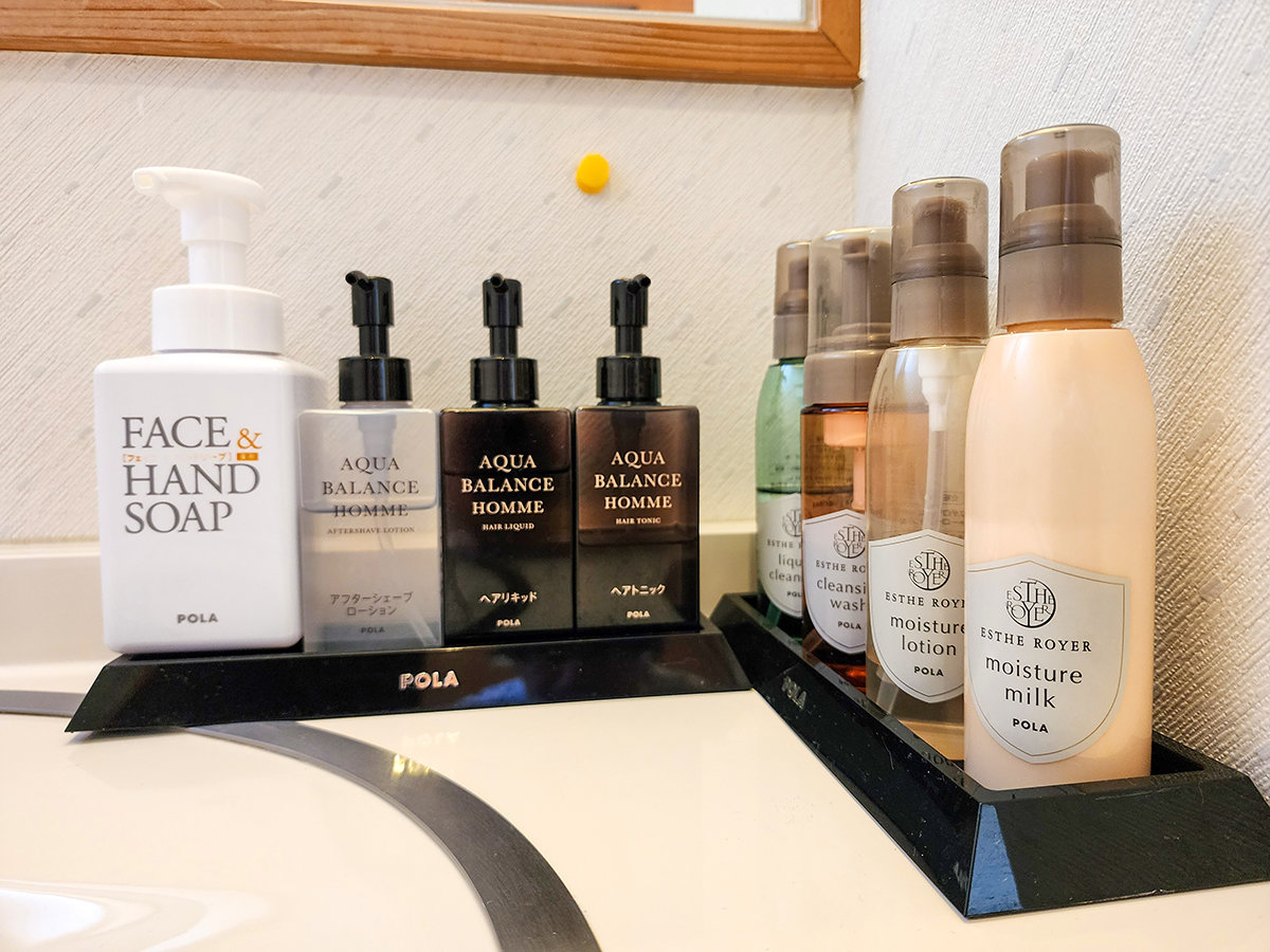 ○ ハンドタオル ○ ボディソープ ○ ドライヤー ○ 温水洗浄トイレ ○ 歯ブラシ・歯磨き粉 × 石けん ○ 羽毛布団 × くし・ブラシ ○ バスタオル ○ 浴衣 × 髭剃り ○ シャンプー