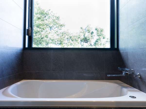 一部のお部屋には大きな窓を備えた浴室があり、明るく心地よい空間となっております。