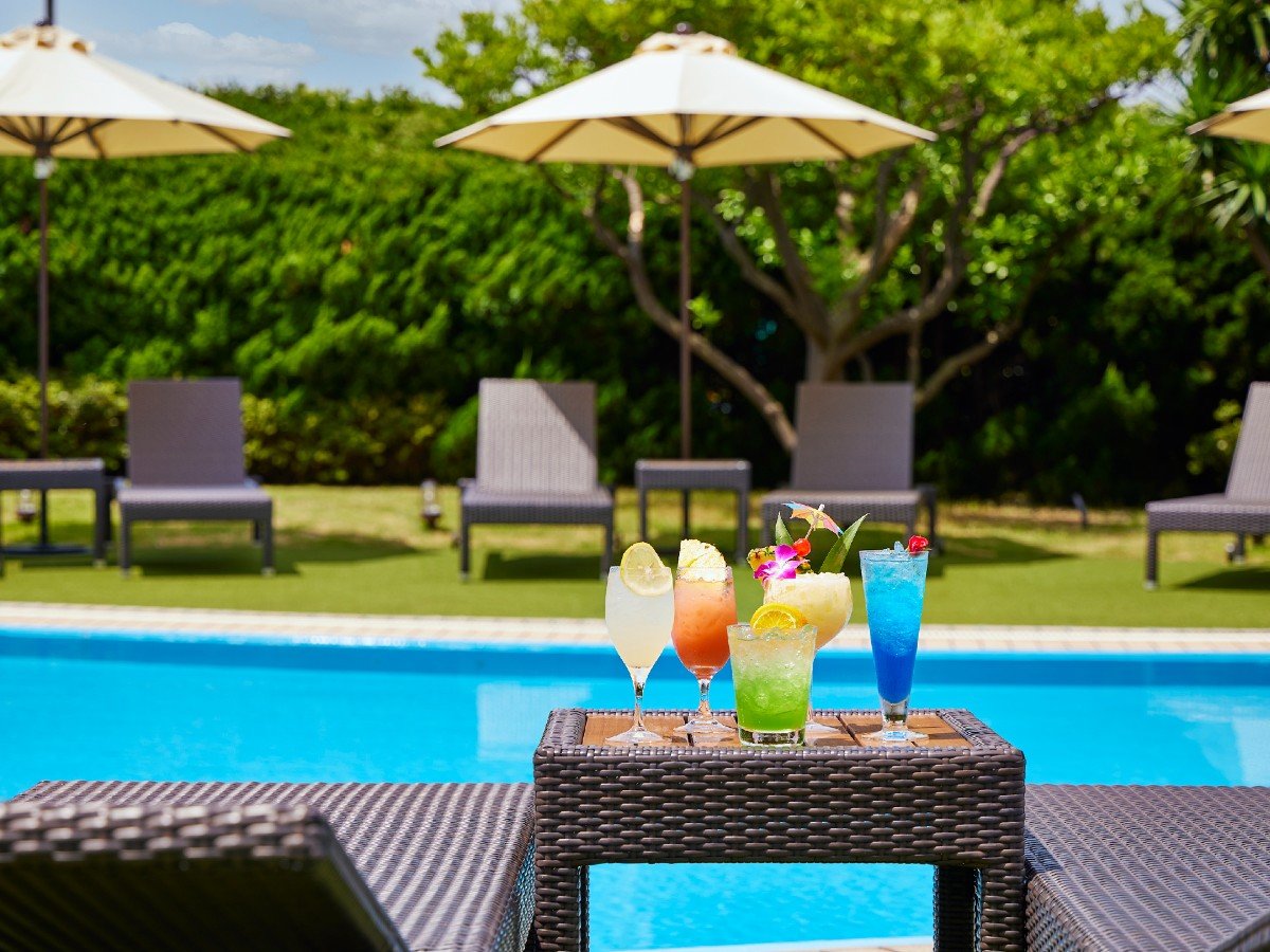 (リンスインシャンプー含む)○ パジャマ ○ シャワーキャップ ○ 入浴剤 ○ リンス × バスローブ ○ 綿棒 ○ パジャマ(ズボンつき) × パジャマ(シャツ) × シャワー独立 施設内容 屋内プール(有料)・屋外プール(有料)・バー(有料)・宴会場(有料)・ラウンジ・禁煙ルーム・製氷機 サービス&レジャー