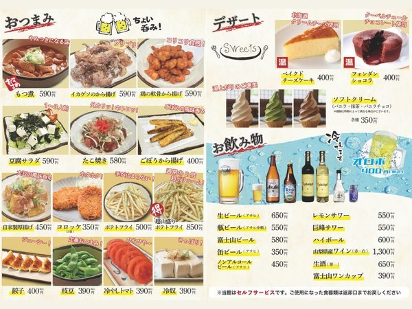 | 風呂利用条件 | 【芭蕉 月待ちの湯のご案内】 10時〜21時迄(最終入館20時30分) ※特典価格でご利用いただけます! ※コテージより徒歩3分程 【館内レストラン】 ・11時〜14時ラストオーダー ・17時〜20時ラストオーダー |