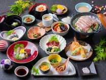 【夕食・柳川美豚(びとん)会席】柳川水路”沖端川”の中流で育てられたブランド豚「柳川美豚」のお料理。