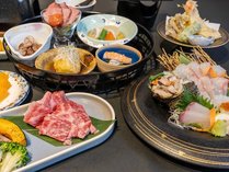 【グレードアップ/夕食】愛媛ブランド牛 愛姫牛の鉄板焼きと季節の刺身盛合せ付(例