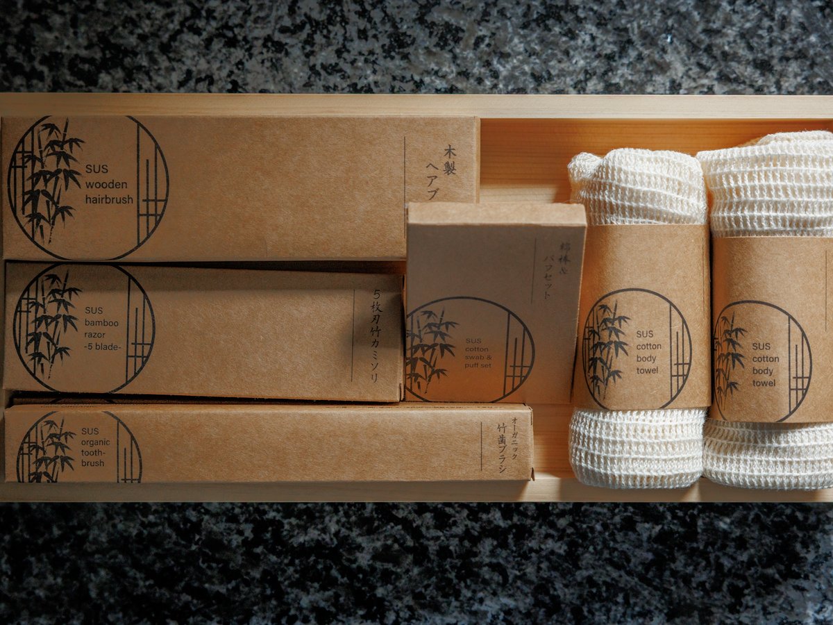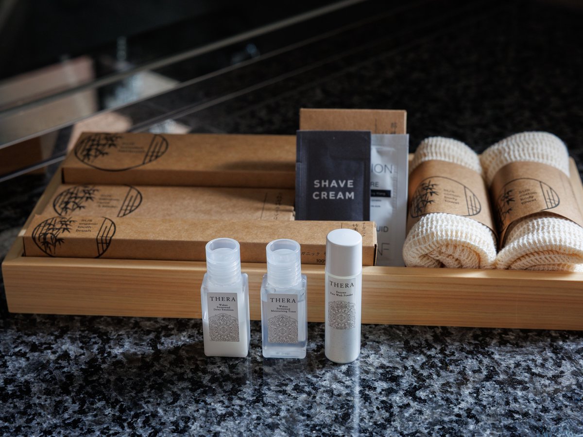 ○ ハンドタオル ○ ボディソープ ○ ドライヤー ○ 温水洗浄トイレ ○ 歯ブラシ・歯磨き粉 × 石けん ○ 羽毛布団 ○ くし・ブラシ ○ バスタオル × 浴衣 ○ 髭剃り ○ シャンプー