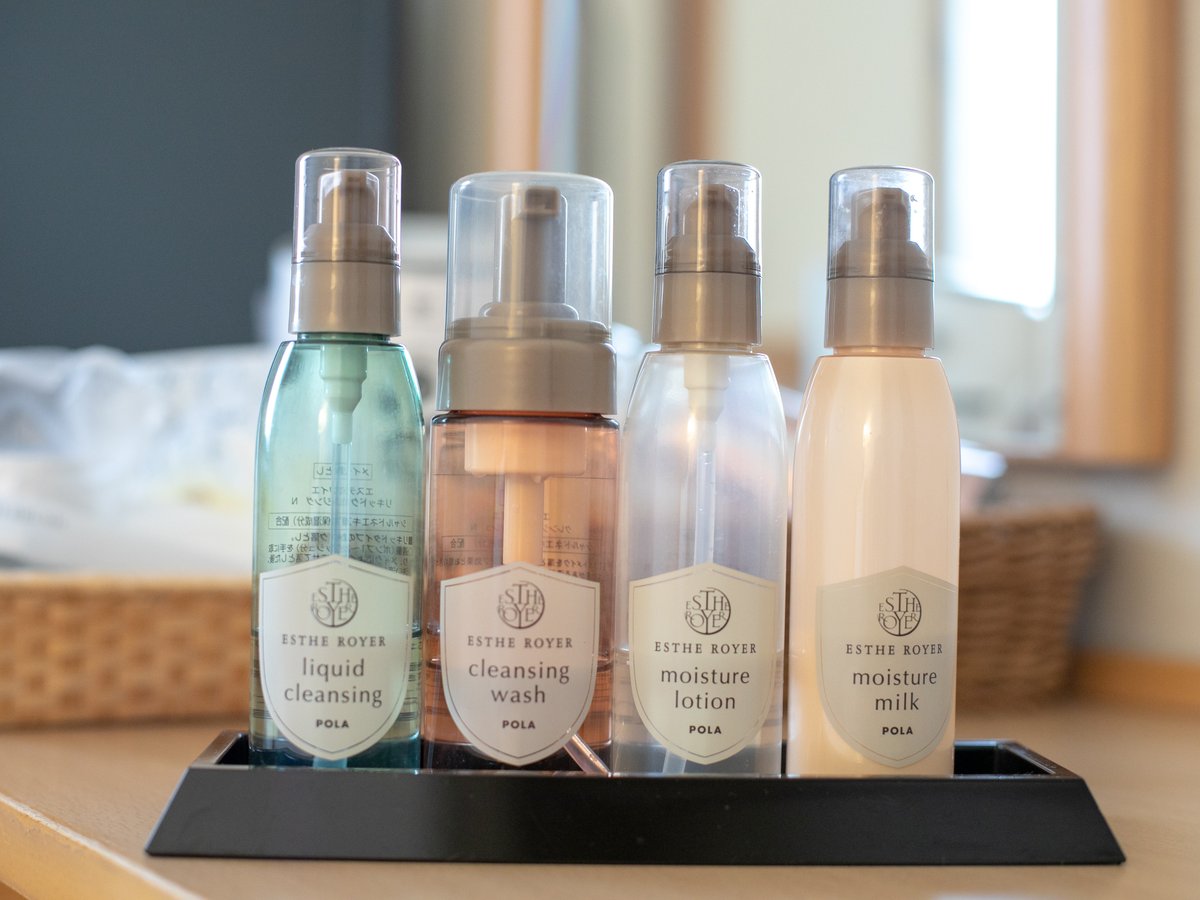 ○ ハンドタオル ○ ボディソープ ○ ドライヤー ○ 温水洗浄トイレ ○ 歯ブラシ・歯磨き粉 × 石けん ○ 羽毛布団 ○ くし・ブラシ ○ バスタオル × 浴衣 ○ 髭剃り ○ シャンプー