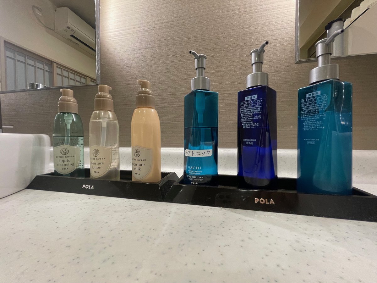 ○ ハンドタオル ○ ボディソープ ○ ドライヤー ○ 温水洗浄トイレ ○ 歯ブラシ・歯磨き粉 × 石けん ○ 羽毛布団 ○ くし・ブラシ ○ バスタオル ○ 浴衣 ○ 髭剃り ○ シャンプー