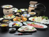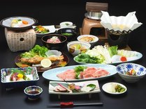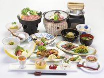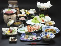 [栄屋定番の味覚A]「牛陶板焼きステーキ」と「カニ鍋」のおすすめ会席