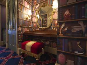 壁紙やベッドスローなど客室のいたるところに、ディズニー映画「美女と野獣」に登場するキャラクターのモチーフがデザインされている客室です