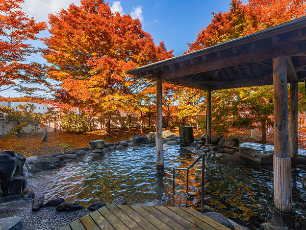 男性露天風呂「鹿の湯」/秋の色彩を感じる露天風呂