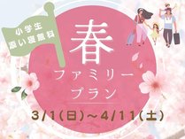 【春休み限定!】小学生6年生まで添い寝無料ファミリープラン<素泊まり>