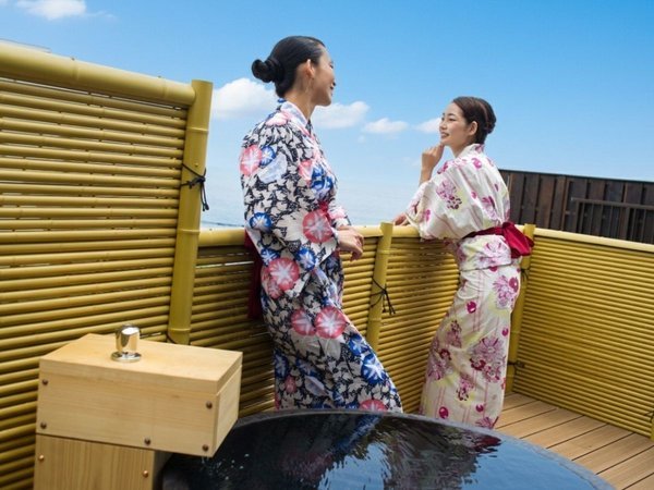 【客室温泉露天風呂】当館の露天風呂付客室はすべて「伊豆稲取温泉」の泉質でお楽しみいただけます。