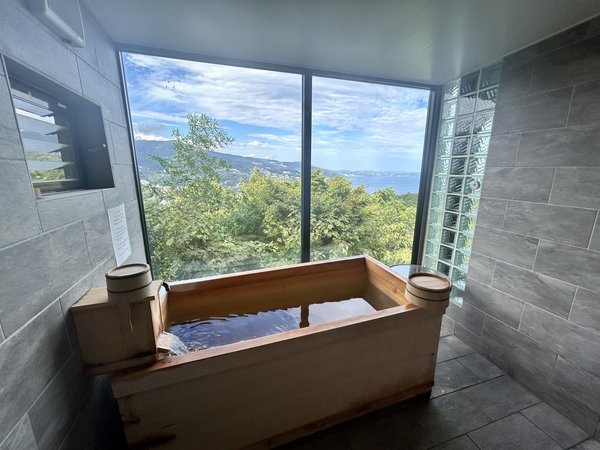 ・【ひのき風呂】景色を眺めながら温泉三昧。日頃の疲れも癒されます