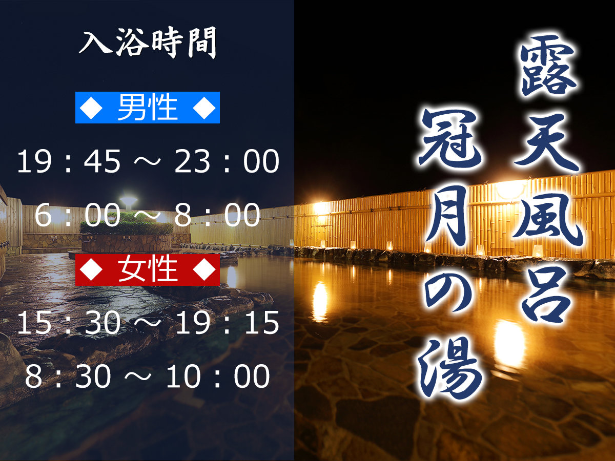 貸切風呂「檜の湯」は15:30〜23:00と8:00〜10:00までとなります。・記載の設備やサービスは、「日帰り・デイユース」ではご利用できない場合もございます。