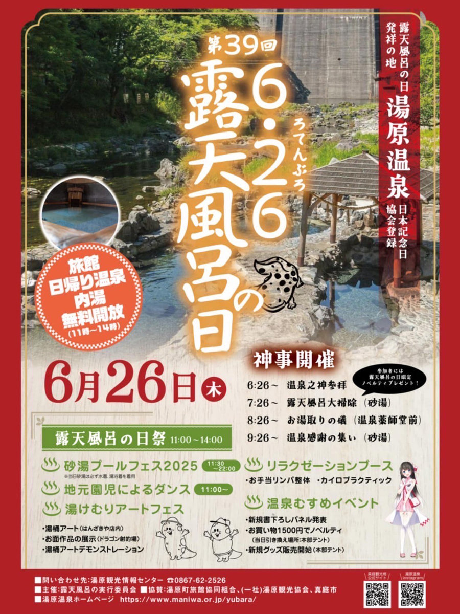 温泉 湯原温泉 (湯原)(天然温泉100%) 露天風呂 あり(男女ともあり(時間交代含む)・貸切不可) 貸切風呂 あり(条件有り) 露天 内湯 サウナ 男 女 混浴 男 女 混浴 男 女 混浴 1 1 0 1 1 0 0 0 0 風呂利用条件 温泉のご入浴は15:30〜23:00と6:00〜10:00までとなります。