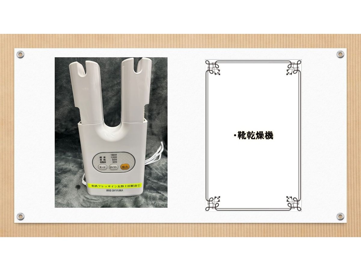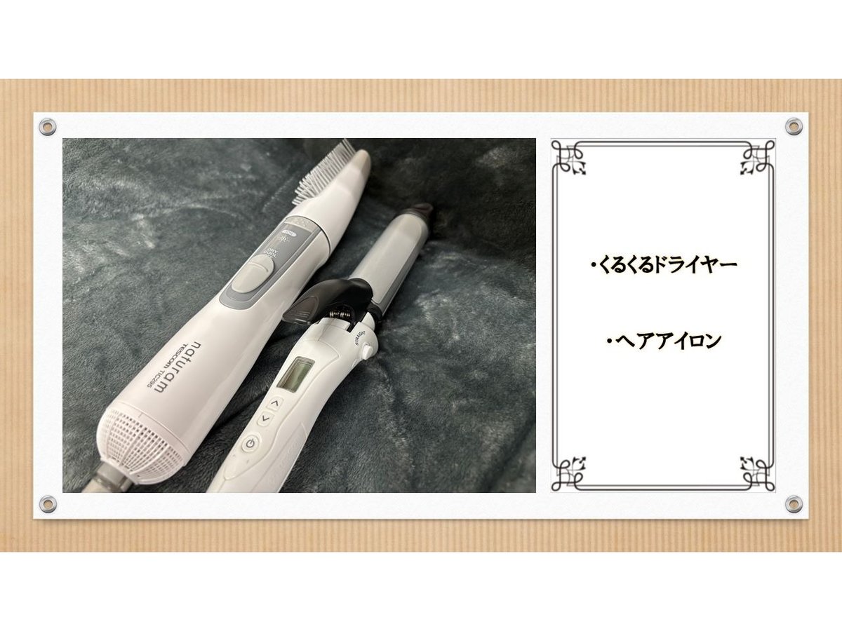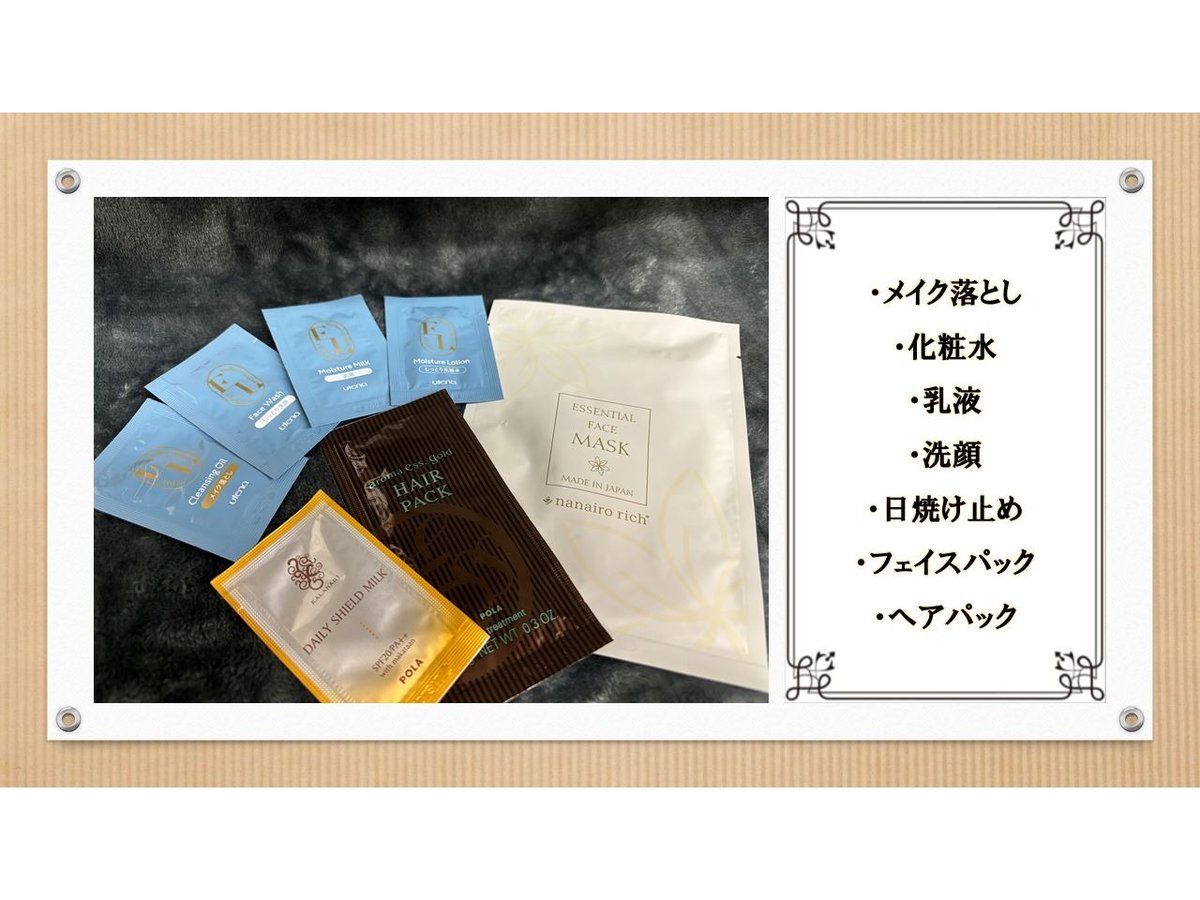 ○ ハンドタオル ○ ボディソープ ○ ドライヤー ○ 温水洗浄トイレ × 歯ブラシ・歯磨き粉 × 石けん × 羽毛布団 × くし・ブラシ ○ バスタオル × 浴衣 × 髭剃り ○ シャンプー